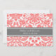 Coral Grey Damask Rehearsal Dinner Party Invitation
