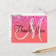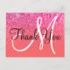 Coral Hot Pink Ombre Glitter Monogram Thank You Postcard