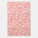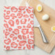 Coral Leopard Print Pattern Kitchen Towel featuring a bold coral animal print over a crisp white background. The modern leopard pattern adds a lively pop of color while remaining clean and versatile enough for everyday kitchen styling. Ideal for brightening countertops, hanging from oven handles, or gifting for housewarmings, birthdays, or hostess occasions. Easily personalize with your details.
