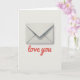 This greeting card shows a single sealed envelope in soft gray-white, centered on an off-white background. The envelope has gently rounded edges and faint shading that makes it look slightly raised, with a quiet shadow underneath. It feels like a private note waiting to be opened, which makes the scene sweet and a little suspenseful 🥰. Near the bottom of the card, the words “love you” appear in coral-red letters that look like casual handwriting. That short line stands out against the pale space and draws your eyes right away. The simple layout makes the message feel honest, like you’re saying what matters without a lot of extra fuss ❤️. It’s a meaningful card to give when you want someone to feel close to you, whether it’s romance or steady friendship. Hope it helps you share your Valentine’s Day sentiments.