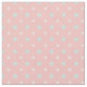 This fabric has a pastel polka dot pattern, in white with trendy coral pink and mint green. It has small white spots and larger mint spots against a coral background, giving it an elegant, chic, stylish appearance.