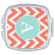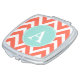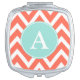 A coral chevron pattern decorates this cute mirror compact. Personalize this compact by changing the monogram letter. The design is from original art.