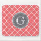 Coral Moroccan Lattice Pattern Grey Monogram Mouse Pad