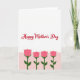 This card features a large white space across the top, giving the design a calm, airy feel. Near the upper center, a flowing red line of lettering stretches wide, like a cheerful note written with care ❤️. Along the bottom, a horizontal band of soft blush pink adds warmth, like a gentle backdrop for a quiet moment between close friends. Rising from that pink band are four coral-pink flowers with layered petals and faint shadows that make them look slightly raised. Each bloom stands on a thin green stem with a couple of simple leaves, and the small differences in height make them feel naturally arranged, like they’re leaning toward one another. The mix of white, pink, coral, and fresh green creates a tender, spring-like scene that feels affectionate without being loud 🌼. The red text remains in the upper portion, while the flowers sit neatly across the lower third, evenly spaced on the pink strip.