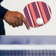Coral, navy blue and white five stripes pattern ping pong paddle