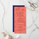 A Navy blue textured pattern is the background for this living coral Wedding Program.