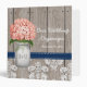 Pretty rustic style monogrammed mason jar binder with a coral peach hydrangea flower and a wooden fence and antique damask pattern lace background and stitched navy blue hued ribbon. This wedding organizer can be personalized with the initials and monogram of the bride and groom on the mason jar and customized with the names of the happy couple on the spine of the organizer. Perfect for a country, farmhouse, garden party or barnyard style wedding. Designed by Chrissy H. Studios, LLC. All rights reserved.