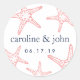 Coral & Navy Starfish Personalized Wedding Classic Round Sticker