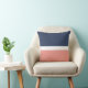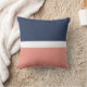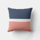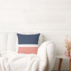 Coral Navy colour palette lumbar decorative pillow with horizontal stripes of shades of coral and navy blue with white accent for your inspired home decor design.