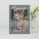 Unique and trendy congratulations graduate announcement and celebration party invitation card, with a classic seafoam gray green and blush coral orange colored background. With room to customize or personalize with a photo, the name of the graduate, class graduation year, high school, future college or university name, and celebration party event information. Let the family, friends and neighbors know there is a happy graduate ready to conquer the world, and invite everybody to come celebrate the happy event with you!