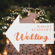 The simple typography and clear arrow ensure high visibility from a distance. This design works well for modern, outdoor, garden, and destination weddings.