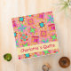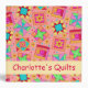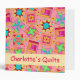 Enjoy this notebook album personalized with your name is great for a quilt or quilt lover. This colofrul quilt art is based on original art by fabric designer Phyllis Dobbs and features favorite patchwork quilt blocks plus unique blocks in vibrant and dynamic colors or red, pink, yellow, blue and green on a coral orange background. A yellow strip on the front and spine gives an area for personalization or other words. This binder has several uses, including for your guild notes, your quilt projects, recipes, patterns or a photo scrapbook album for your quilts. Fully customizable with your name, guild name, subject or other words.