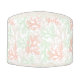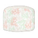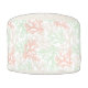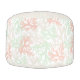 Pastel colored pouf with a pattern of overlapping corals. Top and bottom are printed with a smaller version of the same pattern.