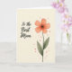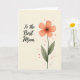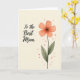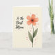 Designed with a soft botanical illustration on a calm cream background, this card centers on a five-petaled flower in coral-peach tones that feels like a gentle hug ❤️. The petals look lightly painted with see-through washes and smooth shading, giving the bloom a tender, affectionate presence like a fond glance between close loved ones. A deep, near-black center anchors the flower, with fine stamens reaching outward in small, delicate lines. A slim green stem supports the bloom, paired with two muted olive leaves marked by thin veins for a natural touch. To the left of the flower, the words “To the Best Mom” sit in flowing lettering, written in a dark, rich color that stands out clearly against the pale background 👩. The text is placed mid-left, balanced so it doesn’t crowd the flower, and it feels like it’s speaking softly alongside the artwork. Small orange-red speckles are scattered around the cream space, especially near the flower, like tiny confetti bits drifting in the air 🌼. The coral-peach petals fade slightly at the edges, and the speckles cluster most densely around the upper right of the bloom.