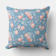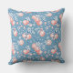 Coral peach pattern on blue background throw pillow
