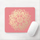 Coral Pink and Gold Mandala Flower Mouse Pad