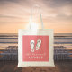 Coral pink beach flip flops wedding tote bags. Whimsical slippers / sandals illustration for beach themed wedding party or bridal shower. Customizable background color behind flipflops with hearts. Cute accessory for team bride; bridesmaids, maid of honor, flower girls, mother of the bride etc. Stylish typography. Personalize with name or monogram. Also nice as favor bag with souvenirs and goodies.