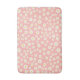 This cute and groovy bath mat features spring bohemian daisies on coral pink.