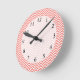 Coral pink chevron pattern wall clock. Coral pink and white chevron pattern.