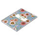 Original contemporary botanical artwork featuring a floral pattern of colorful bunches of coral pink, blush and peach African Daisies, aka Gazania flowers, on a blue background.