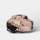 On this stylish back pack is a classy peachy pink and black gypsy scarf with faux coins and coins creating stylish hippy chic vibes. Can be personalized on the front pocket in the black circle with a letter or logo.
