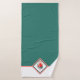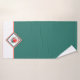 This bath towel set features an image of a coral pink flamingo and palm leaf at the center of a diamond shaped banner. The banner is double lined with matching pink and green. On the hand towel and wash cloth, the banner with the flamingo image is placed at the center of the green background. On the large bath towel, the banner separates the green background from a bottom white border. For a complete decor, be sure to see the other bath decor items in our store that fit into our Coral Pink Flamingo line of products.