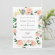 A trendy floral wedding invitation in white, coral and peach . A chic white background on the front. Decorated with large, lush watercolored flowers, florals in white, coral and peach. Templates for the names and wedding details. Dark gray text.