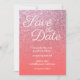 Soft cashmere pale pink faux glitter photo and coral ombre overlay for your wedding save the date information.