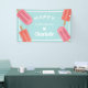 Designed to match our popsicle kids' birthday party invitations, this cute personalized banner features pink and coral popsicles with the words "Happy Birthday [Name]" in the center in retro lettering, adorned with a heart.