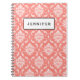 Coral Pink White Classic Damask Pattern Notebook