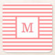 Coral Red and White Stripes Custom Monogram Square Paper Coaster