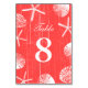 Coral Red Beach Theme Seashells Table Numbers Cards.