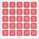 Coral red square number stickers featuring clean white sans serif typography in a modern minimalist design. These 2.2-inch custom number labels combine a warm pink-red tone with crisp readability, creating a bright and stylish organization solution.