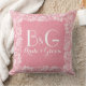 Coral-Red Linen & White Lace Frame Throw Pillow