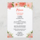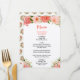 This beautiful and elegant wedding menu features watercolor coral pink red roses and foliage. The text combines handwritten script and serif fonts for a stylish and modern look. This is perfect for a spring or summer rustic wedding.