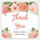 This beautiful and elegant thank you sticker features watercolor coral pink red roses and foliage. The text combines handwritten script and serif fonts for a stylish and modern look. This is perfect for a spring or summer rustic wedding.