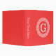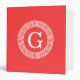 Coral Red Wht Greek Key Rnd Frame Initial Monogram Binder