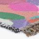 A quality printed throw has its advantages. This is a much finer weave throw than its loopier cousins, and though lighter, it is worth the investment for custom room accessorizing. The back is much prettier than the typical brown, and the fringe on the long sides very vivid, the selvage nicely done. Before photographing, I washed the throw in cold water, delicate, with a thicker woven throw the same size. On tumble dry low, this throw was dry in half the time as the other. This is a very practical quality if you use throws for furniture covers or to wrap up in frequently. The sleekness of the fabric makes it a great layer for accenting or protecting without the feeling of sitting on too much stuff. Perfect for napping or when you feel a light chill coming on. The color printing is beautiful and on this fabric, matched the design and color of my Photoshop image. This is an advantage for blending room fabrics and colors. The fringe on the short sides prints the colors from the design image and therefore varies from the side fringe. I streaked a white fractal line through the plaid pattern to give the illusion of weaving. This printed as crisp as an illusory thread, and put some white in the short side fringe, showing another advantage of print vs loomed- for artistic purposes, line lines, detail, and color integrity can be planned and preserved. My loomed throws have color limitations and more of a needlepoint texture. Print throws reproduce an exact image. The throw felt a little stiff straight out of the package, but this went away in the first delicate wash. Of course I searched the wash water for ink or bleeding and there was none.