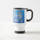 Original fine art design of sea horses, starfish and coral by artist Carolyn McFann of Two Purring Cats Studio printed on a quality travel mug for coral reef and saltwater aquarium fish fans.