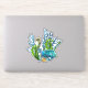 Custom-cut vinyl sticker with an image of a colorful coral reef where there are beautiful blue coral amid bright green seaweed, a yellow mottled seahorse, a fantastic blue fish, and seashells. See matching favor tag. See the entire Under the Sea Sticker collection in the INVITES | Stickers & Labels section.