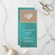 Coral reef teal blue and sand kraft paper beach wedding ceremony and party program showcasing a white coral reef on kraft style paper that covers the upper of the card, a teal blue grunge background with your text and a gold stripe. The back includes teal blue stained background with text in white.