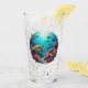 A vignette of a tropical coral reef, with a sea turtle, an ocgtopus, fish, and corals makes the perfect drinking glass for the beach house, or for anyone who loves nature, marine life and the sea.