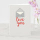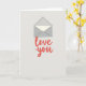 This card shows a simple love-letter scene that feels quiet and sweet. Near the top center, there’s an open envelope in soft gray, with a creamy white letter peeking out. Below it, the words “love you” fill the lower half in coral-red brush lettering that looks like real paint strokes. The letters have a loose, flowing look, making the message feel honest and close to the heart. The background is a warm beige, like light paper, which keeps the focus on the envelope and the words. It’s easy to give because it says what you mean without needing anything extra, whether it’s for a partner or someone you care about ❤️. The whole layout feels like a note you’d keep, not just read once 🥰. Hope it helps you share your Valentine’s Day feelings in a simple, caring way.