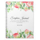 A personalized Christian Scripture journal featuring a beautiful watercolor border at the top and bottom with coral red roses and green leaves, the phrase "Scripture Journal " in dark grey hand lettered font, with the Bible verse “The grass withers, the flower fades, But the word of our God stands forever.” Isaiah 40:8 NKJV underneath (which can be changed). Personalized by adding a name.