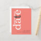 Minimalist Coral Rose Pink QR Code Text Save The Date. A modern typographical design in natural eathy tones to invite your family and friends to save your date, with Save Our Date in large typography rotated and to the left hand side at the top in white, with a black letter "t" on a background of pretty coral rose pink. Easily personalise the rest of the text. Add your QR code to your wedding website on the back by replacing the QR code on the sample. You can create QR codes for free online. Simply search “QR code creator” and lots of options come up to create for free.
