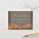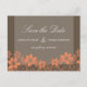 Elegant and refined Rustic Floral Save the Date Postcard featuring a two-toned digital art wood panel background in dark brown and a lovely cascade of beautiful flowers framing the bottom of the design in orange. This sweet design is perfect for announcing a seasonal wedding with an outdoor or garden theme. Easy to customize, simply add the details of your wedding in the text fields provided. Click on the "Customize It" button to find additional personalization options.