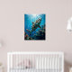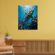 A breathtaking coral shark glides upward through a radiant tropical reef where ocean power meets botanical beauty. Sleek shark anatomy blends with branching coral textures, sea fans, reef polyps, and vibrant marine colors in turquoise, coral orange, pink, and sea green. Sunbeams cut through deep blue water as bubbles and tiny fish surround the majestic creature. This surreal underwater design brings movement, elegance, and coastal energy to bathrooms, beach homes, modern interiors, or ocean-inspired gift collections. Perfect for lovers of sharks, reefs, and fantasy marine wildlife.