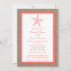 Coral Starfish Beach Burlap Bridal Shower Invitation