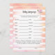 Enjoy playing this Baby Language baby shower game on soft, girly peach, coral and white watercolor stripes background. Cute, pink, flamingo with white sea clam shells on back with templates created for you.