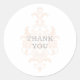 Simple with chic elegance describes this sophisticated Subtle Damask Wedding Thank You Stickers with a light coral orange damask flourish background. These classy stickers are perfect for a traditional wedding and can be easily customized with your wedding details. For more customization options, click on the Customize It button.
